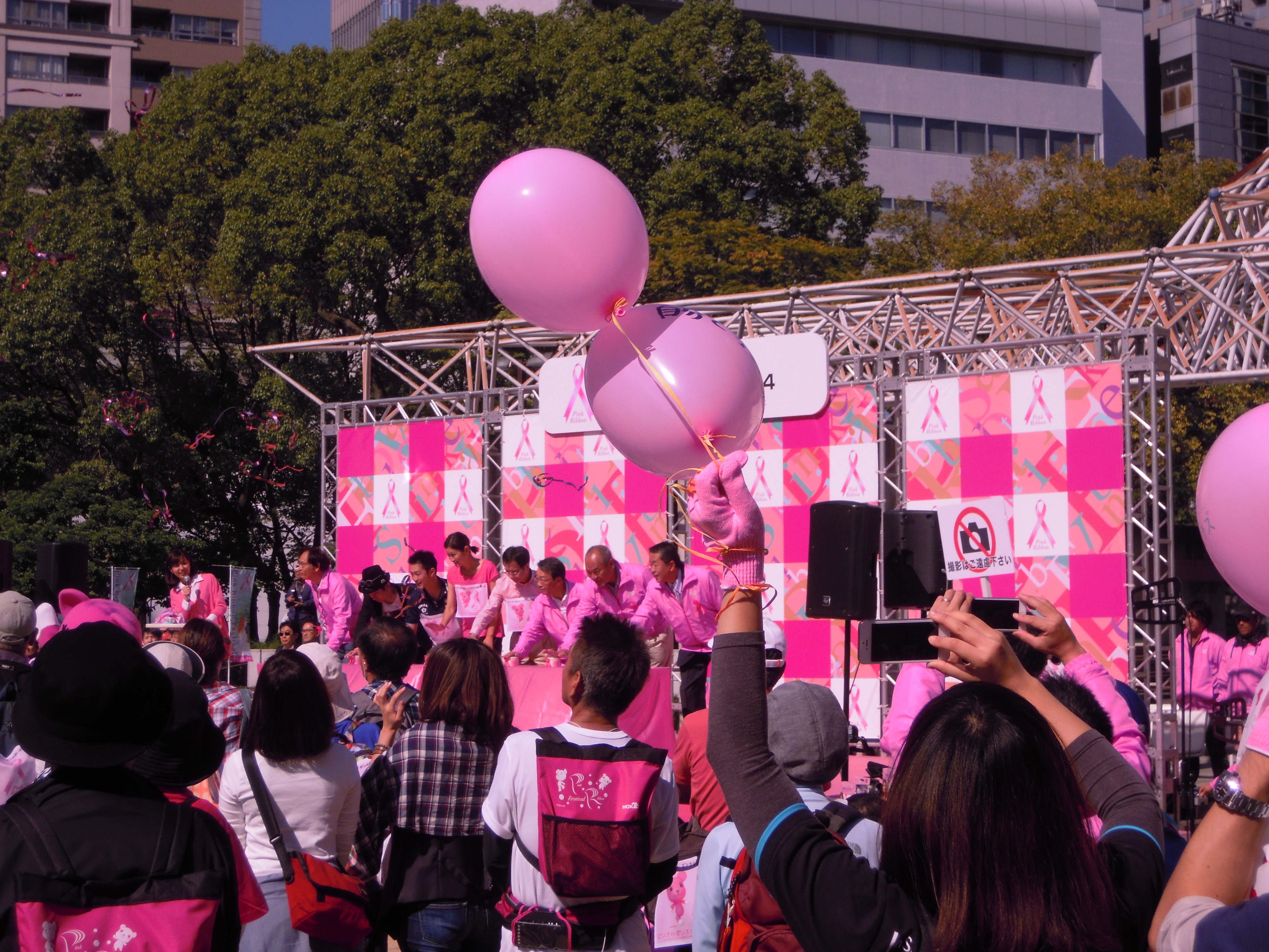2014年ピンクリボンスマイルウォークに参加。今年で11年目の参加となります。昨年はあいにくの雨模様だったのですが、今年は秋の好天に恵まれウォーキング日和です。